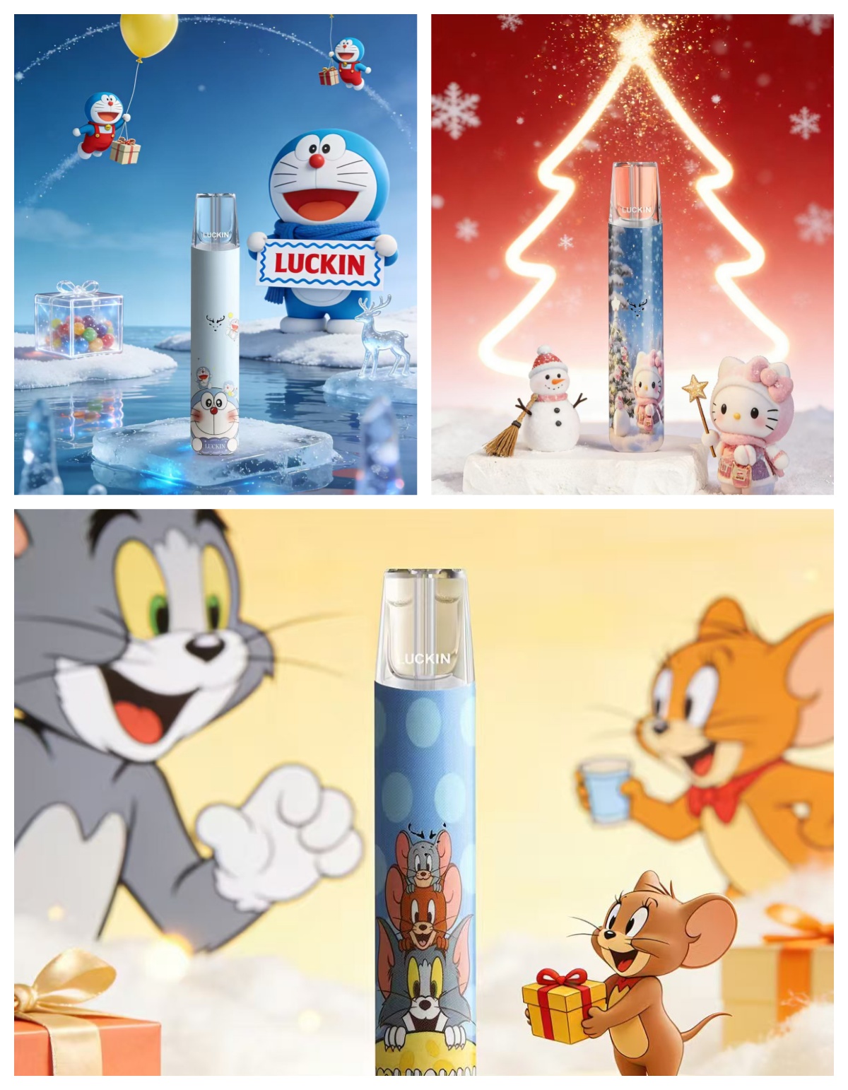 LUCKIN 幸運主機攜手人氣IP打造限量聯名款,傑利鼠、小叮噹、冰雪Kitty猫、 迷你圖案點綴機身,既可愛又時尚,是收藏與使用兼具的精品電子煙主機。